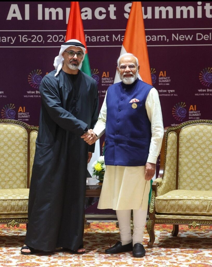 H.H. Sheikh Khaled bin Mohamed bin Zayed Al Nahyan, Crown Prince of Abu Dhabi, has met Emmanuel Macron, President of the French Republic, on the sidelines of the AI Impact Summit in New Delhi.