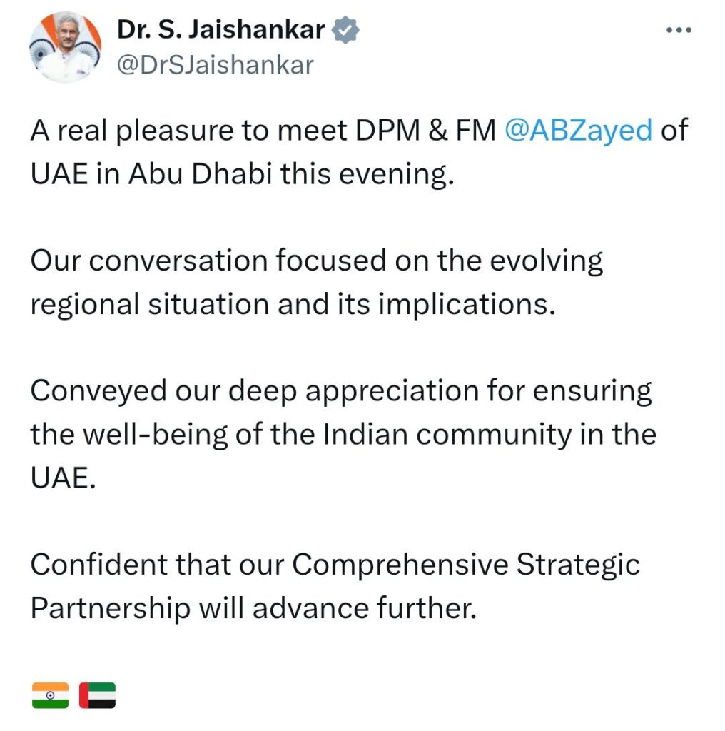 Pictures Courtesy X Handle of Dr. S. Jaishankar (EAM-India) and Indian Embassy in the UAE