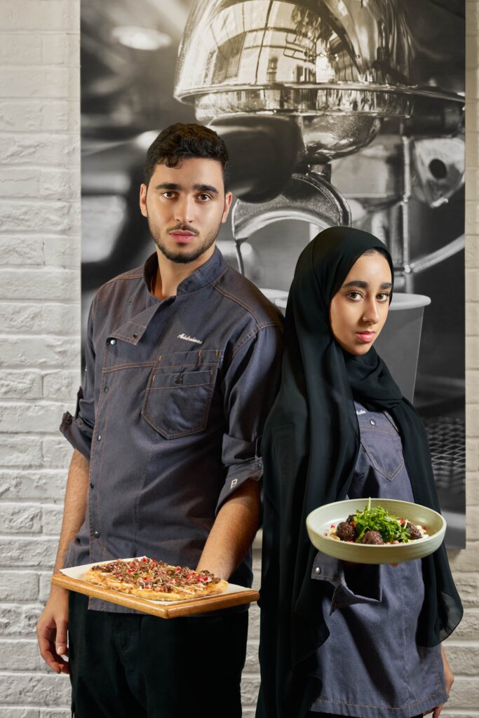 TWIN CHEFS- Creativity naturally goes back and forth between us, depending on the project. When differences arise, we test and the dish decides, not ego. Open communication and mutual respect are key, but as siblings we often fight anyway – sometimes we argue for the sake of arguing! However, Chef Abdulrahman, being the activist learner between us, usually jumps into the solutioning mode whilst I, as Chef Maitha focuses on the application pragmatics. Being twins helps, we understand each other instinctively and know that the result is always stronger and most important when both perspectives are included.