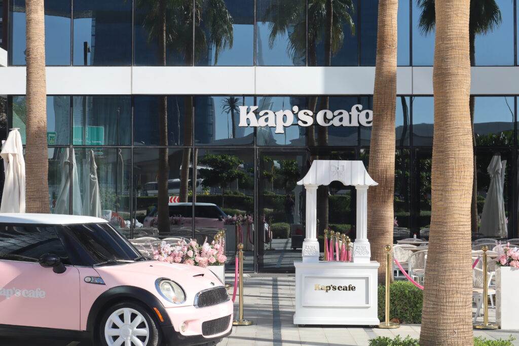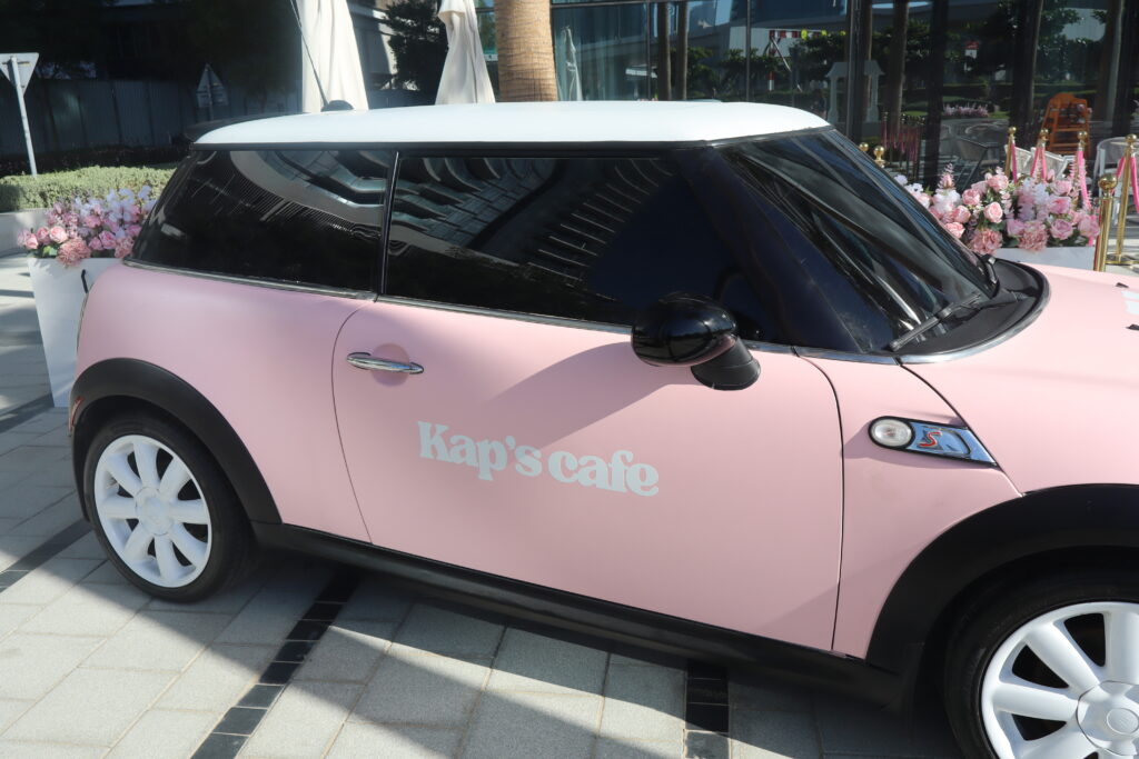 A Kap’s Cafe–branded Mini Cooper parked outside the café adds a delightful visual touch.