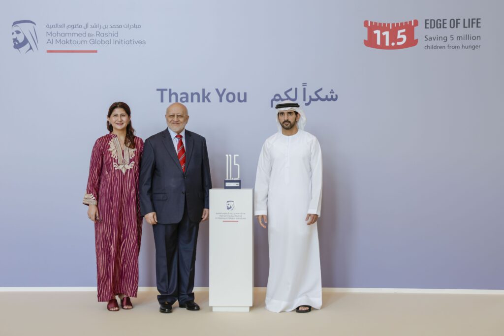 H.H. Sheikh Hamdan bin Mohammed bin Rashid Al Maktoum, Crown Prince of Dubai, Deputy Prime Minister, Minister of Defence, Chairman of The Executive Council of Dubai and Chairman of the Board of Trustees of the Mohammed Bin Rashid Al Maktoum Global Initiatives (MBRGI) met with a group of donors and contributors to the Edge of Life campaign aimed at rescuing five million children from hunger.