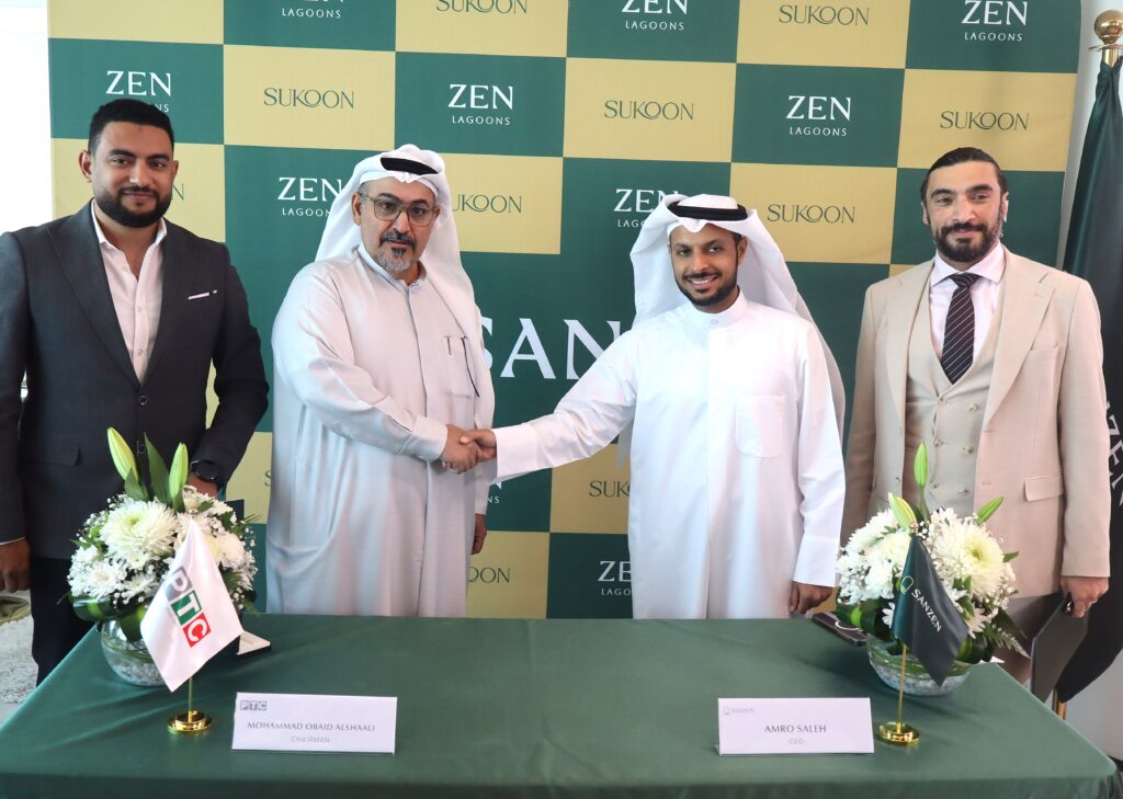 The ceremony was attended by Mr. Abdulaziz Al Sanad, Chairman of Sanzen; Mr. Amro Saleh, CEO and Founder of Sanzen; Mr. Mohammad Obaid Alshaali, Chairman of PTC Contracting; and Mr. Hesham Mustafa, Project Manager at PTC Contracting.